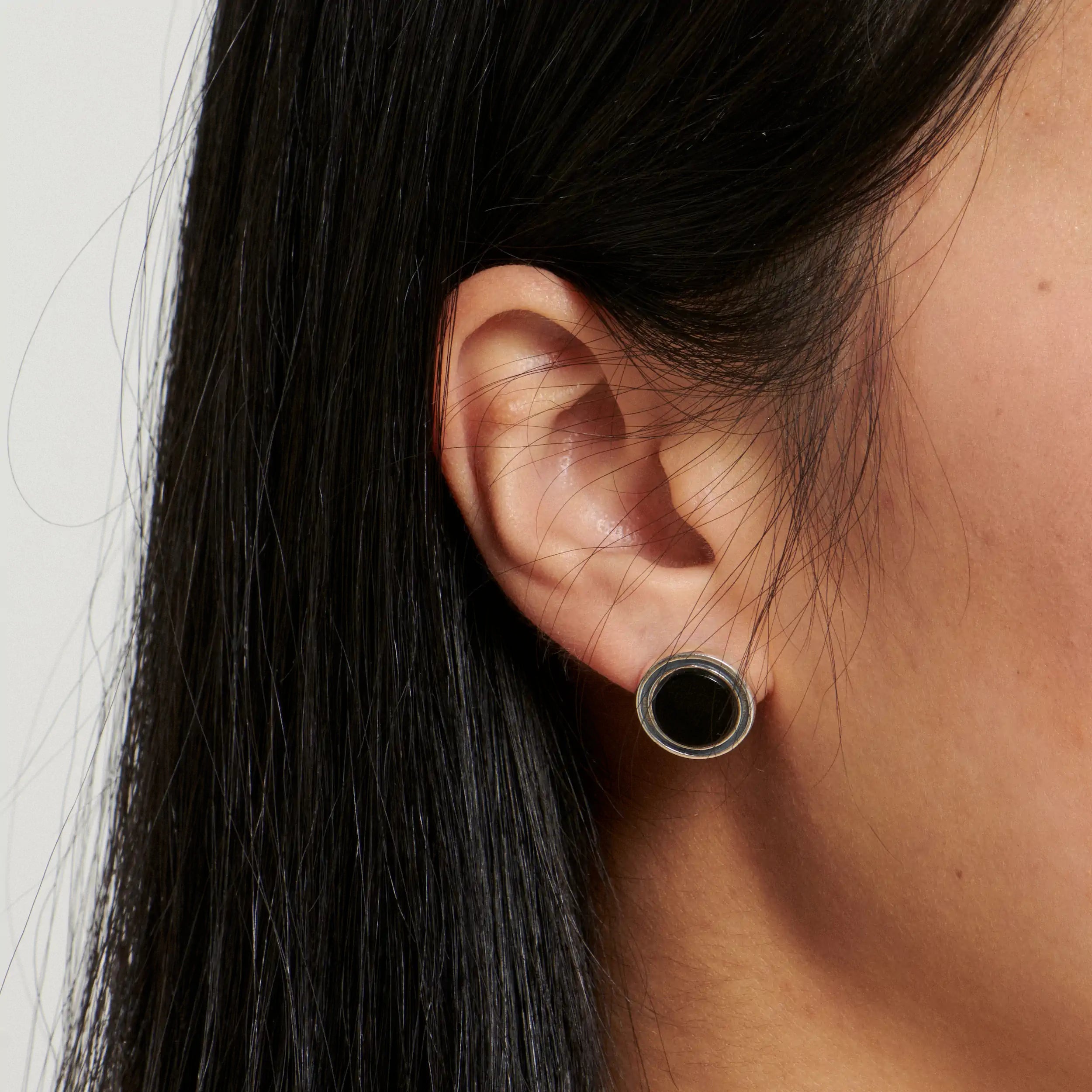 The Black Hole earrings with a clean circular shape and a black stone at the center, are named after the black holes evoking the infinite void. The simple shape and deep black shade lend a special appeal, perfectly complementing modern and minimalist styles.