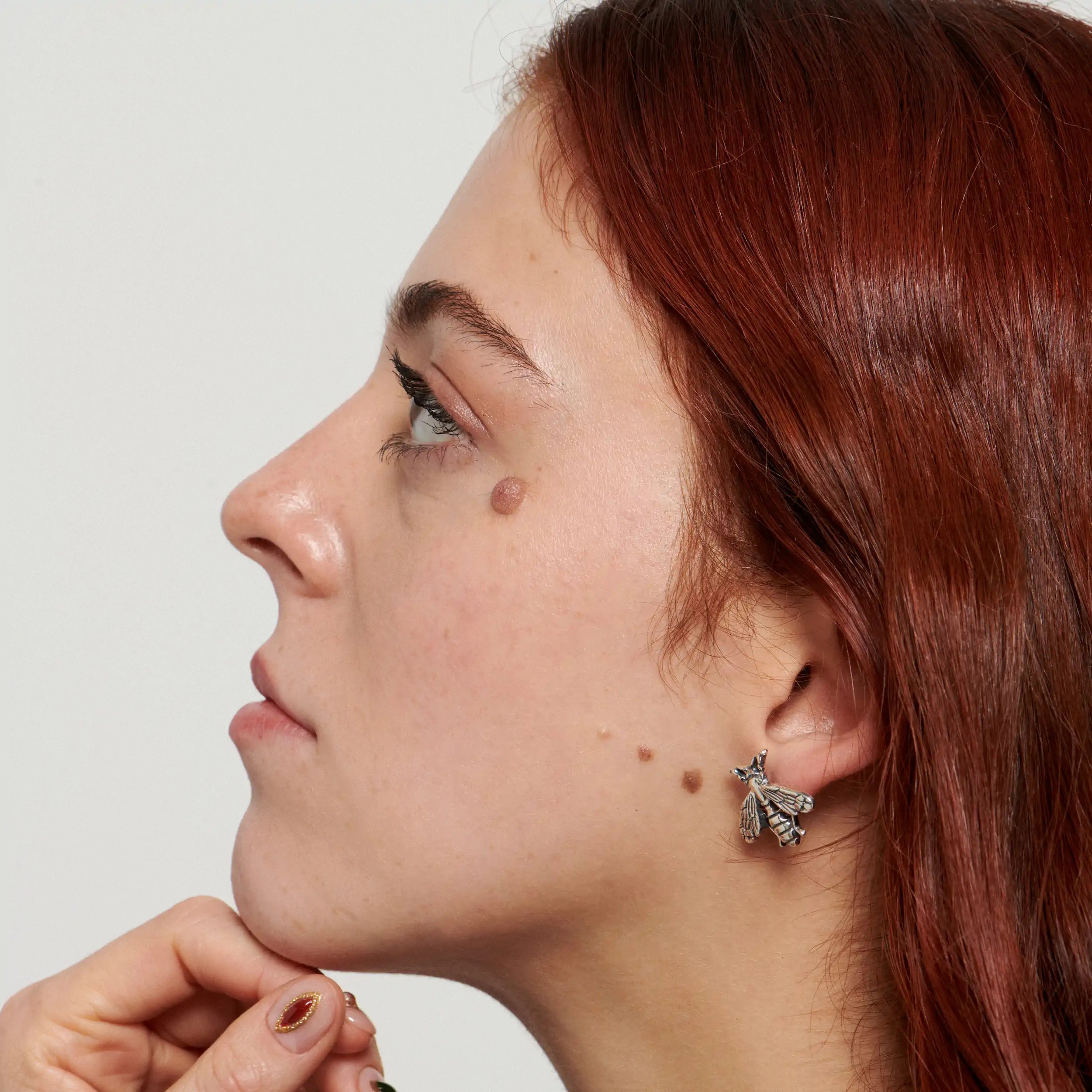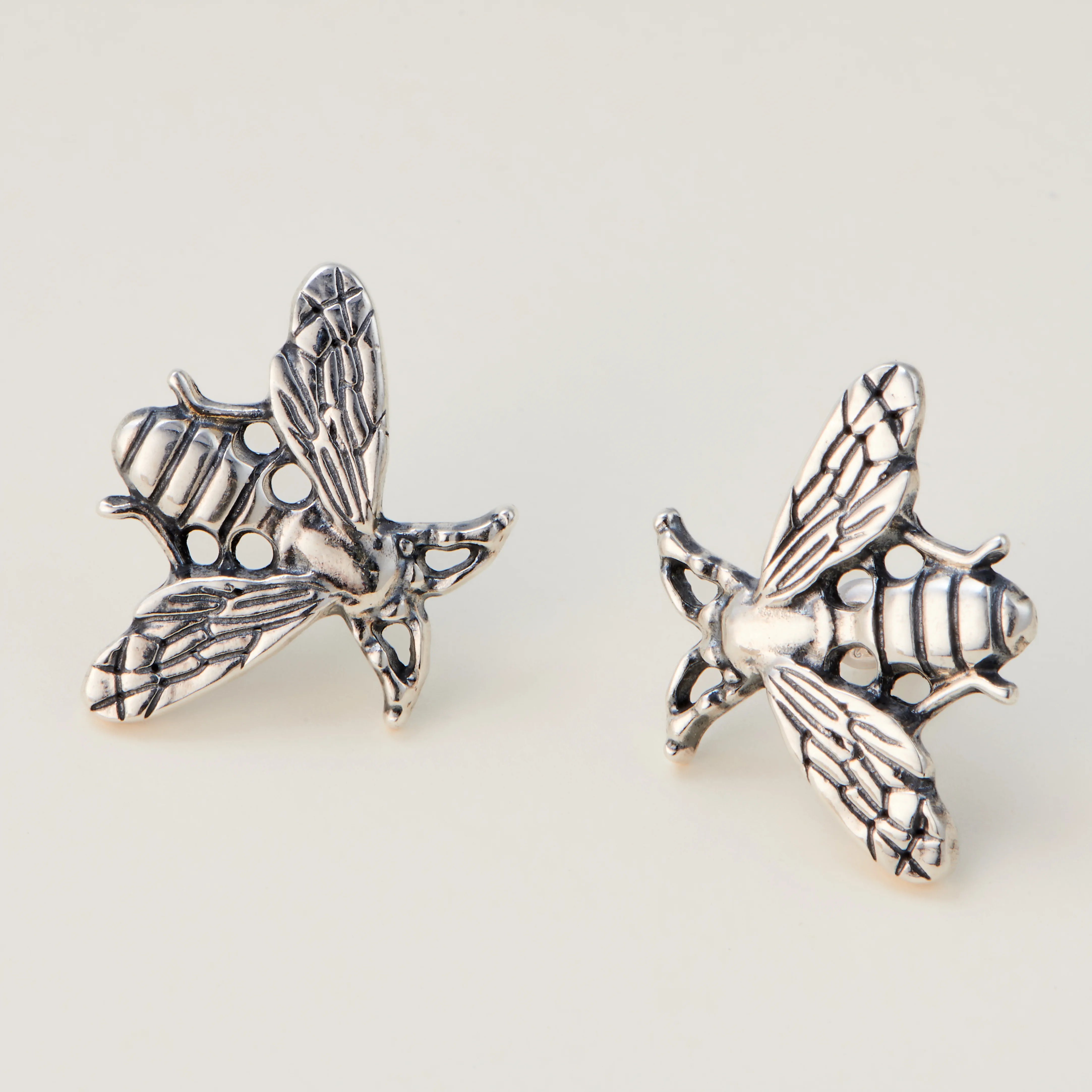 These polished silver earrings, featuring a detailed bee design, sparkle with the beauty of nature.