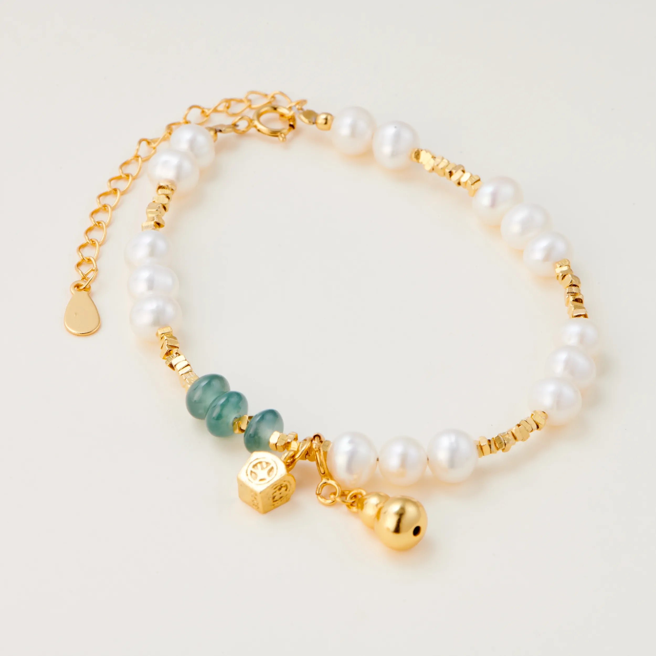 • Central elements: blue jade and freshwater pearl