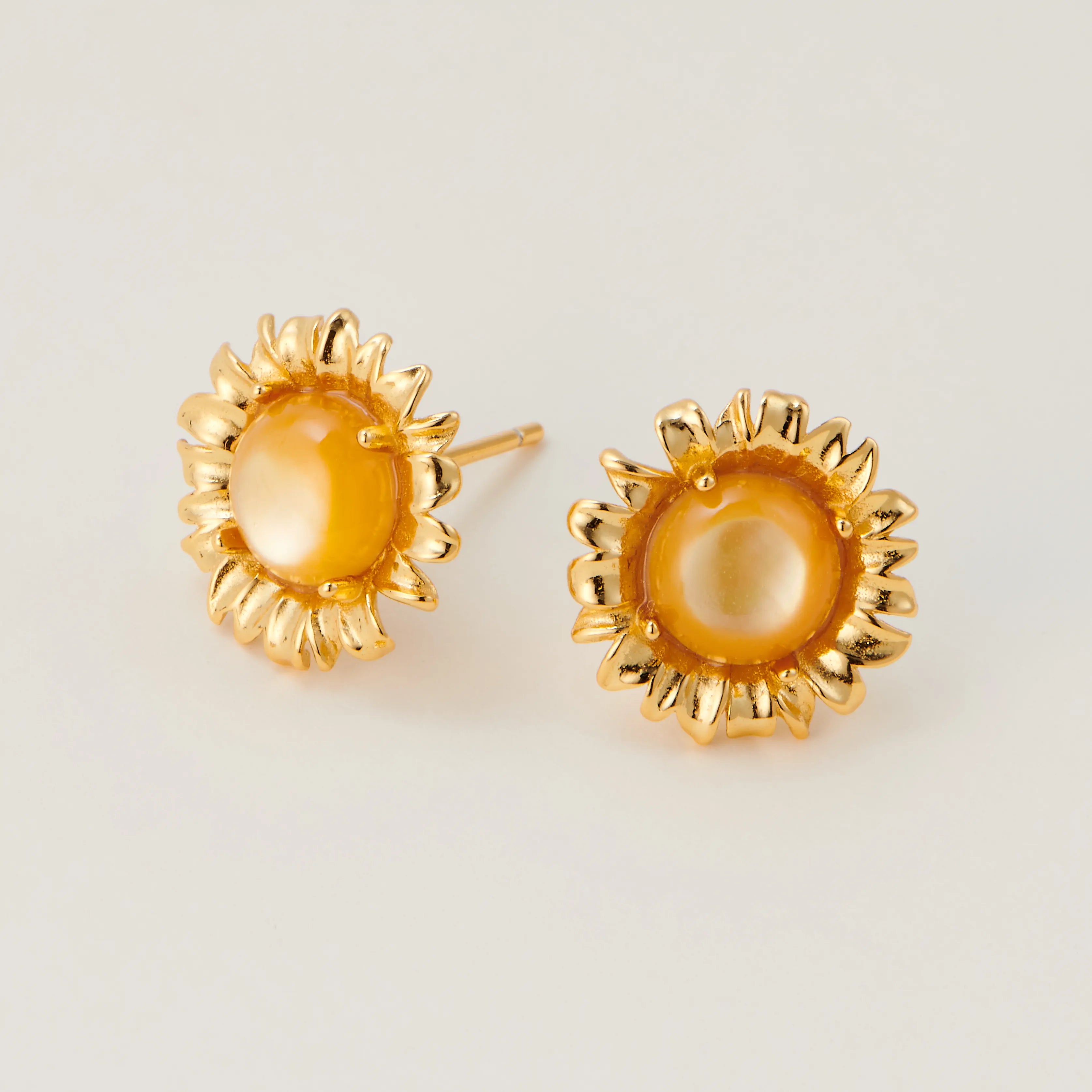 The Sunflower Gold earrings shine in gold, like a sunflower flower in the midday sun, every part of them reflecting the light with a brilliant shine.