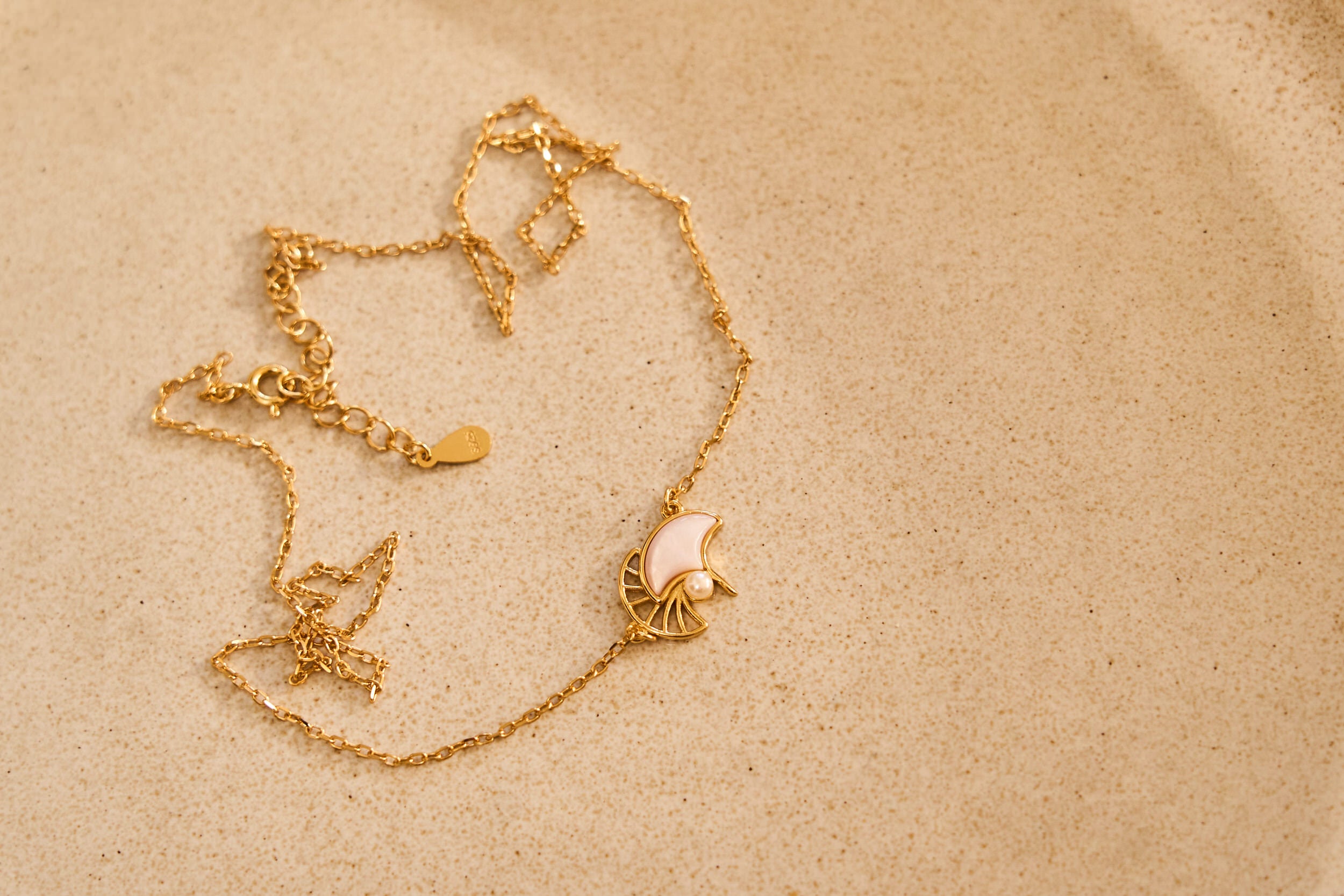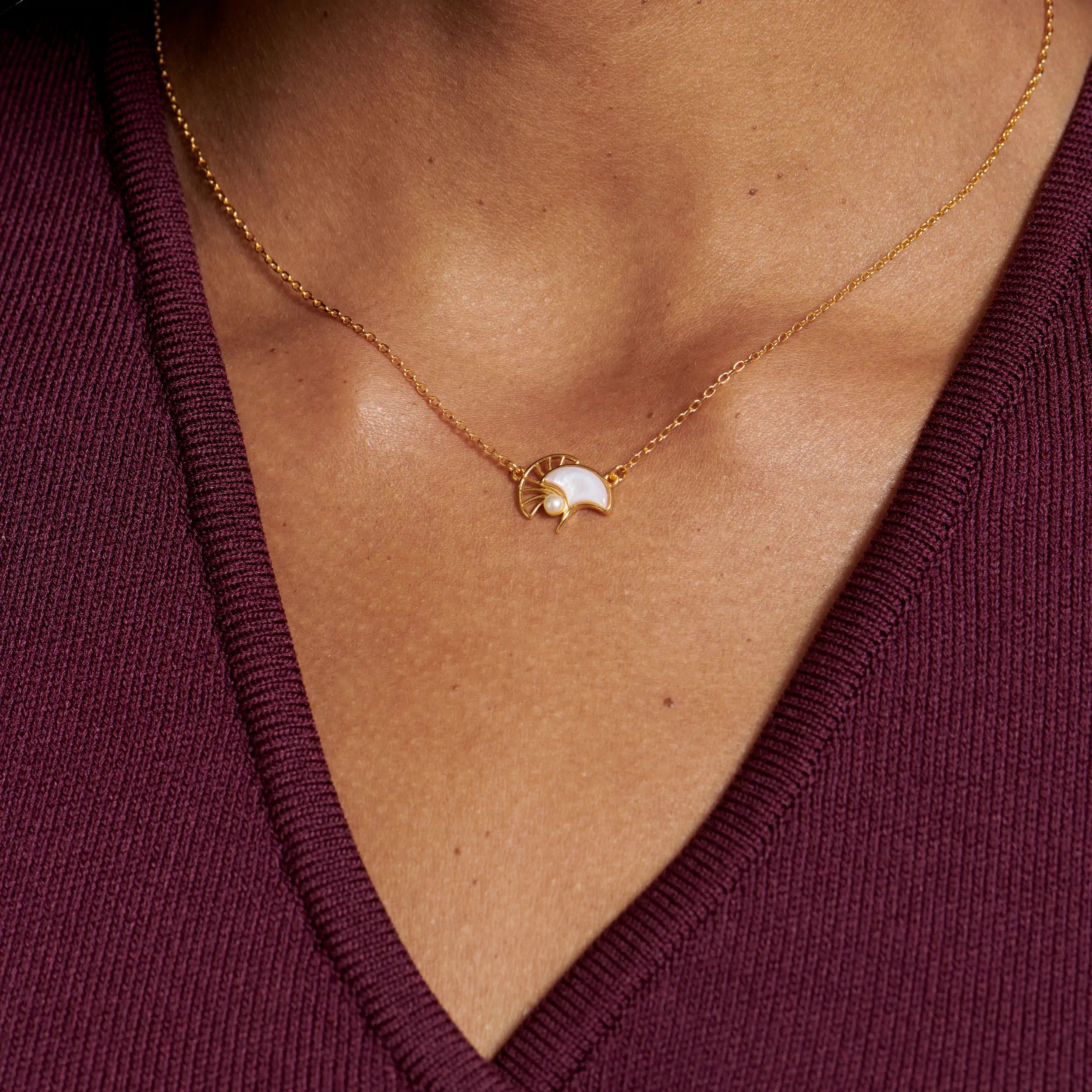 This gold-plated silver necklace's pendant features an open shell accented with a lovely pink nacre. Next to it lies its treasure, a freshwater pearl.