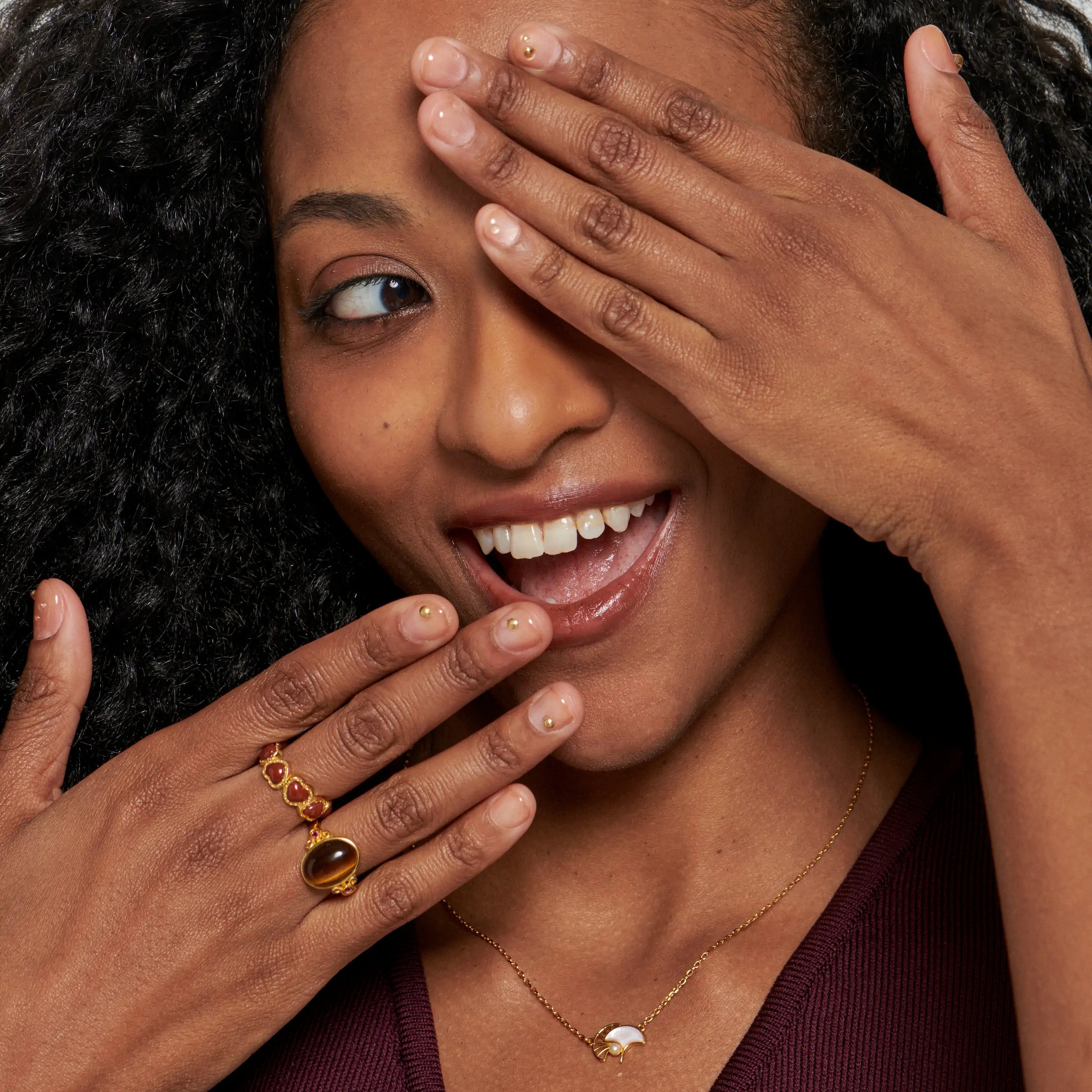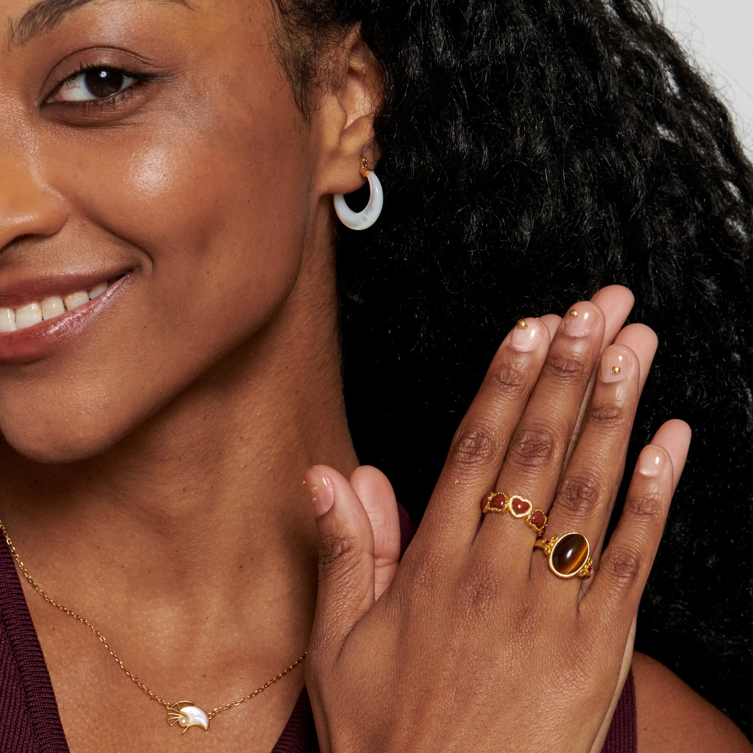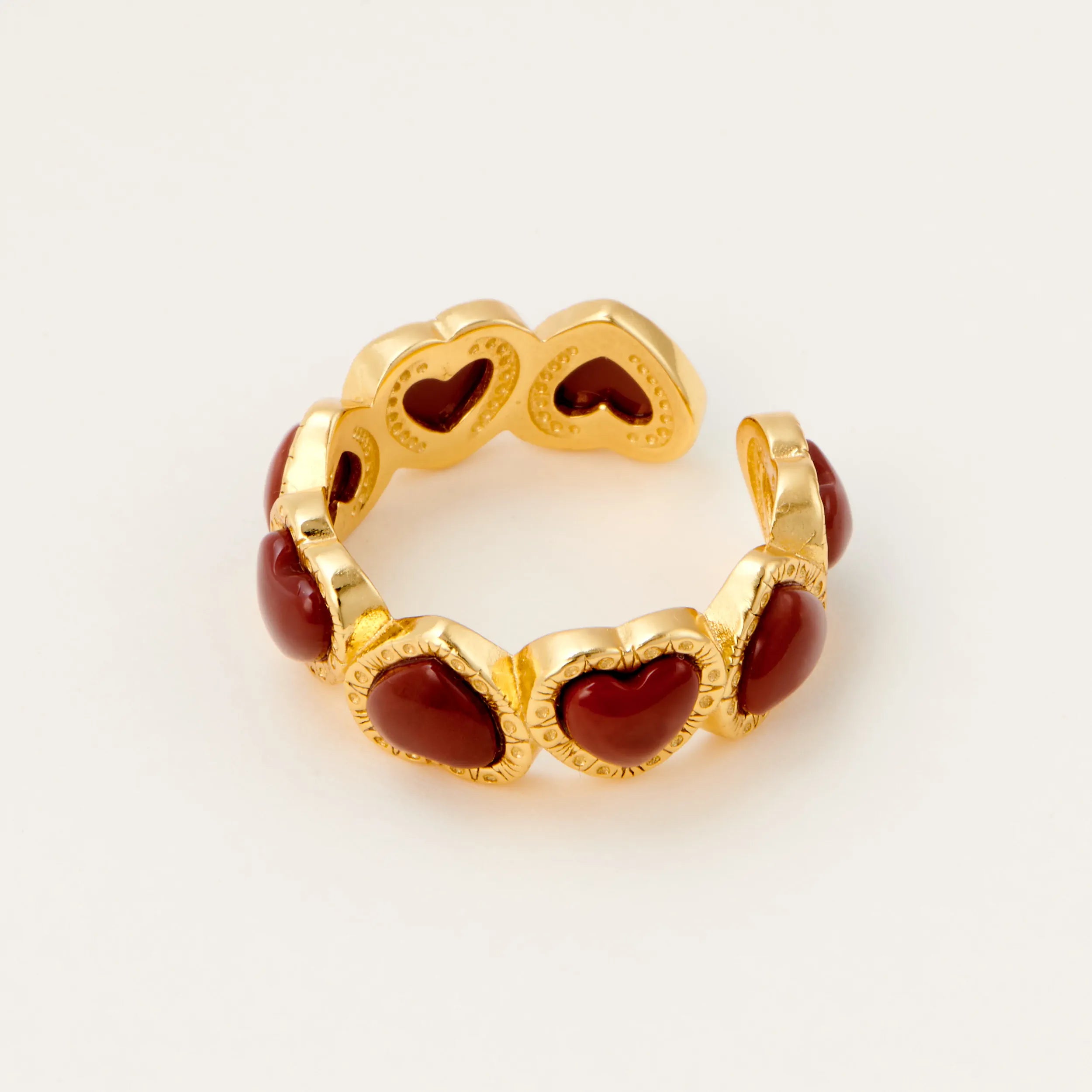 The heart is the main character in this ring, which holds many hearts for its wearer. Red agate is the perfect stone for this, which is embraced and held together by gold-plated silver. Luxury, durability and value throughout the ring, inside and out.